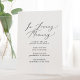 Ce panneau de socle mémorial de mariage noir délicat en souvenir est parfait pour un mariage moderne. Le design minimaliste romantique présente une typographie noire élégante et charmante sur fond blanc avec un look propre et simple.