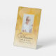 Souvenez-vous de la vie de votre être cher après leur mort avec l'élégant mémorial funéraire des pétales de fleurs de rose jaune ou la fête de la vie signe piédestal. Ce joli panneau d'hommage fleuri présente une photographie florale rapprochée d'une fleur de rose jaune fleurie de pétales bouclés et les mots En souvenir. N'hésitez pas à modifier le texte et à le personnaliser avec une photo, le nom du défunt et les dates de naissance et de décès.