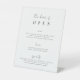 Invitation vos invités à prendre une libation préférée du bar avec notre charmant panneau de menu de bar mariage. Le design comprend "le bar est ouvert" en écriture de calligraphie noire et en lettres de bloc. Personnalisez avec vos sélections de boissons sous.