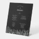 Ce Mariage de verdure noir et blanc Boissons Menu Pedestal Sign design offre une combinaison classique de typographie minimaliste simple avec un étage de couleur noir et blanc neutre et de l'art de ligne chic vert. Les ornements en silhouette de feuille moody sont astucieusement arrangés pour créer une belle forme fluide qui démarre les éléments géométriques polies, offrant une belle collection pour convenir à un large éventail de thèmes mariages et événementiels pour toute saison. Comme pour tous nos designs, s'il y a quelque chose de spécial que vous aimeriez ajouter ou modifier pour correspondre à votre thème mariage, n'hésitez pas à tendre la main.