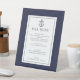 Signe De Table Menu de bar classique à l'ancre nautique bleu mari