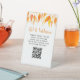 Distance sociale restaurant menu invité QR code. Un petit panneau pédagogique avec des feuilles d'aquarelle automnale en chute orange. Aidez vos invités à rester en sécurité avec cette vue facile d'utilisation du menu sur votre appareil à l'aide de code QR signalétique. Idéal pour garder vos clients en sécurité et réduire la propagation avec des menus sans contact. Ajoutez votre propre code QR pour vous connecter à votre menu ou à d'autres instructions. Peinture et design d'aquarelle par www.mylittleeden.com sur Zazzle.