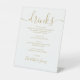 Signe De Table Menu des boissons de mariage à l'écriture dorée