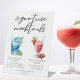 Cette signature chic de plage mocktails panneau de piédestal comprend une simple typographie noire au-dessus de 2 boissons balnéaires et leurs ingrédients pour votre fête côtière. Un délicieux lever de soleil hawaïen bleu et un dessin de fraise Daiquiri non alcoolisé ajoutent une touche cool à votre menu du bar. Complétez avec les noms du couple et la date de leur réception.