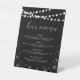 Ajoutez du détail à votre occasion spéciale avec ce panneau de menu de boissons de douche de mariage d'hiver. Ce design présente des guirlandes lumineuses élégantes, des flocons de neige et un texte personnalisé sur fond noir. Parfait pour une douche de mariage d'hiver argentée et noire moderne, ou pour la fête de mariage d'un couple. Des invitations et des fournitures de fête assorties sont disponibles dans ma boutique BaraBomWedding.