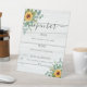Bois blanc rustique comme arrière - plan. Décoré de tournesols aquarellés et de verdure d'eucalyptus. Avec le texte : Ouvre la barre. Personnalisez et ajoutez le menu de votre barre.