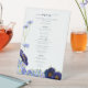 Magnifique artiste peint à la main fleurs sauvages et feuillage en bleu roux, bleu cornflower, bleu marine, violet et vert, idéal pour une journée unique de printemps ou d'été du menu mariage. Élégant script de typographie moderne en bleu marine complète la charmante boho à la main peinte à la main qui comprend des fleurs de maïs, pavot, cosmos, ne m'oubliez pas les noeuds et feuillage délicat. Menu mariage bohème chic parfait pour une prairie de printemps, mariage d'été dans le jardin. OEuvre originale de l'artiste Catherine Sweetman