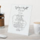 Menu du mariage Tabletop se connecter en noir et blanc avec deux coeurs arrière - plan. Ce design correspond à notre collection rustique d'écorce de bouleau. Customisez le texte noir avec les noms de la mariée et du marié en haut. Le lieu et la date de l'événement sont suivis du titre "menu". Tous les entrées, entrées et autres choix de menu sont listés dans un paragraphe. Ajoutez des espaces si nécessaire. Ce panneau blanc, debout, vient en plus grandes tailles.