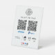 Make checkout simple and professional with this custom business logo QR code scan to pay tabletop sign, designed for modern, cashless businesses. Add your company logo, business name, payment QR code, and custom text, along with social media icons to help customers easily connect with your brand.