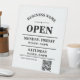 Make a strong first impression with this Modern Business Opening Hours Pedestal Sign, designed to showcase your logo, business hours, and QR code in a clean, stylish way. Perfect for storefronts, pop-up shops, salons, boutiques, cafés, offices, and events, this sign helps customers quickly find essential information at a glance.
