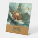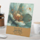 A gorgeous minimalist emerald and gold color wedding "Please Sign Our guestbook" pedestal sign. with names of the bride and groom and wedding date.