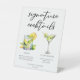 Cette signature estivale de cocktails guéridon affiche une typographie noire simple au-dessus de 2 de vos boissons préférées et de leurs ingrédients pour votre bar mariage côtier. Un dessin chic Mojito et Martini ajoute une touche ludique à votre menu de bar. Complétez avec les noms du couple et la date de leur réception.