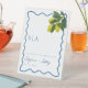Ajoutez une touche d'élégance à votre décor grâce à notre Monograms Citrus citron & Bleu Vague Bordure Mariage Pedestal Signe. Présentant une branche de citron d’aquarelle fraîche et une bordure ondulée bleu doux, ce panneau personnalisable présente les initiales, les noms ou un court message du couple, parfaitement lié à votre thème mariage d’inspiration méditerranéenne ou italienne. Idéal pour les tables d'accueil, les espaces réservés aux clients, les panneaux de bar ou les présentoirs de faveur, ce guéridon apporte un aspect poli et cohésif à tout espace.