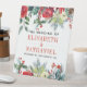 Aquarelle hiver botanique saisonnière fleurs rouges, cônes de pin, fraises saintes et baies et branches de sapin, et votre script personnalisé en typographie rouge faisant une belle coutume mariage mariée et noms de mariés bienvenue signe de table. +++++++++++ Facile à personnaliser et parfait pour les mariages floraux de Noël hivernaux, anniversaires, fêtes ou autres fêtes de couple.