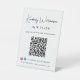 Signe de tablette de socle personnalisable pour votre entreprise avec votre nom dans un script de signature élégant et type d'entreprise ci-dessous dans une typographie moderne simple. Entrez l'adresse URL de votre site Web pour créer un code QR pour les clients et les clients à rechercher une liste de vos produits, services, heures, etc. Ajoutez vos identifiants instagram et facebook pour que les clients puissent vous suivre sur les médias sociaux. Si nécessaire, ajustez la taille de la police en modifiant l'outil de conception. Un panneau de signalisation de fenêtre correspondant est également disponible - envoyez-nous un message pour le lien.