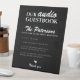 Un design minimaliste noir et blanc avec un élégant script vient compléter votre décoration mariage par un design épuré et moderne. Parfait pour se placer près d'une zone désignée pour le livre d'or audio, encourageant les invités à prendre part à votre événement avec leurs messages et leurs souhaits amusants.