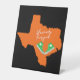 Uvalde hommage et pro-la réforme des armes à feu conception de guéridon comprend la silhouette de l'état du Texas orange avec haut-Chucks vert et "n'oubliez jamais" texte sur l'arrière - plan noir.