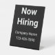 You can edit the text to show a custom message. (Shown: Now Hiring) You can edit the other text to show a custom message such as your company name and phone number. The sign is black. The text is white.