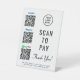 Panneau de piédestal de table moderne pour votre entreprise avec les codes Venmo, Paypal et CashApp QR pour les clients à scanner pour les paiements mobiles sans contact. Ajoutez votre logo, les codes QR et les coordonnées, l'adresse, le téléphone, le site Web, etc., en simple typographie.