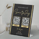 Black and Gold Scan to Pay Business Sign avec espace pour deux codes QR, votre nom d'entreprise ou logo et les liens de médias sociaux. Ajoutez votre paypal, venmo, pomme payante, cashapp ou tout autre mode de paiement électronique. Doté d'un élégant design noir et faux or, ce panneau haut de table de paiement sans contact est parfait pour votre salon, boutique ou toute autre entreprise.