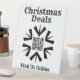 Signe du code QR de Noël. Le message dit "Trouvez-nous en ligne". Image d'un flocon de neige avec code QR. Offres de Noël.