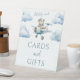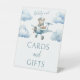 Introduisez un charme fantaisiste à votre douche bébé à thème "We can bearly" avec cette enseigne de cartes et cadeaux délicieuses. Doté d'un ours en peluche bleu clair qui monte sur un avion, ce panneau ajoute une touche de douceur à votre célébration. Découvrez ce design adorable pour une expérience de baby shower mémorable et joyeuse.