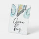 This oyster-themed open bar tabletop sign is a stylish way to let guests know drinks are on the house. Perfect for coastal weddings, oyster roasts, bridal showers, and seaside celebrations, it adds a fun nautical touch to your bar setup. A charming detail that coordinates beautifully with oyster-themed décor and bar signage.