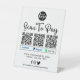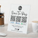 Scanne professionnel moderne noir et blanc pour payer qr le panneau de piédestal. Caractéristiques de conception script de typographie "scan to pay" en lettres noires tendance, arrière - plan blanc, codes 3 qr avec mode de paiement qui peut être remplacé par vos propres icônes si nécessaire. Personnalisez encore plus avec votre logo, site Web, médias sociaux et numéro de téléphone. Parfait pour les propriétaires de petites entreprises.