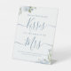 Amusez vos invités avec ce jeu amusant devinez combien de baisers pour la future Mme enterrement de vie de jeune fille, avec des fleurs aquarelles romantiques en bleu poussiéreux et vert sauge, et un script moderne élégant, simple et élégant, idéal pour un enterrement de vie de jeune fille moderne boho, des fêtes de mariage dans un jardin botanique.