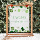 Élevez votre shower de mariage avec notre pancarte de faveurs moderne ornée de trèfles verts amusants. Parfait pour un shower de mariage sur le thème de la Saint-Patrick, cette pièce décorative ajoute une touche d'élégance à votre célébration.