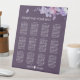 Un élégant panneau de plan de table de mariage floral violet comportant des fleurs aquarelles douces en lavande, rose et blanc, accentuées d'un papillon délicat pour une touche finale romantique. Le fond riche de couleur prune et la bordure supérieure florale créent un présentoir raffiné et élégant, parfait pour aider les invités à trouver leur place à votre réception de mariage. Un choix magnifique pour les couples qui créent une papeterie de mariage et une suite d'enseignes florales coordonnées.