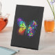 Arc en ciel, papillon monarque lumineux, artistiquement peint avec bouquet de roses irisés, lumineux, lumineux sur arrière - plan noir. Papillon arc-en-ciel.