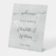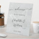 Un arrière - plan faux argenté, décoré de faux éclats de parties scintillant et d'un grand papillon comme un filigrane. Avec le texte : Bienvenue à notre mariage. Personnalisez et ajoutez vos noms.