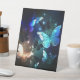 Fabuleux, brillant, bleu et jaune, papillon de nuit sur arrière - plan foncé.