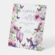 Vie des papillons violet rose nuptiale douche cadeaux panneau modèle, marguerites roses verres de champagne violet avec papillons printemps été nuptiale douche panneau décoration personnalisée
