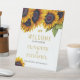Symbole d'accueil de mariage rustique moderne et élégant, avec de beaux bouquets de tournesols d'or jaune avec un feuillage vert naturel et deux petits coeurs dorés et un script de typographie siglé. +++++++++++++++++++ Facile à customiser avec les noms de mariée et de mariée, date et lieu. ++++++++++++++++++ Convient pour l'été ou l'automne jardin extérieur ou jardin cérémonies et réceptions mariages.