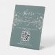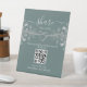 Elégant, moderne sauge vert Partager L'amour mariage code QR signe de table avec coeur de corde en argent et script de calligraphie simple écrit à la main.
