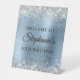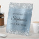 Créez votre propre 50e anniversaire fête fêter bienvenue guéridon pour votre ami. L'arrière - plan dispose d'une parties scintillant en argent brillant avec un art numérique en fausse feuille bleu clair. Tous les éclat, parties scintillant et brillance sont créés avec des éléments numériques qui s'impriment comme une photo.