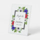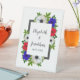 Le design présente des fleurs patriotiques d'anémones de panda rouge, blanc et bleu avec des eucalyptus vertes sur un cadre gris fusain.