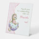 A plaque on a pedestal with gratitude and an invitation to accept one gift. The text can be replaced with whatever you need.Baby shower.