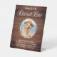 Biscuit Bar...Nous Aimons Notre Chien Comme Nous sommes Sûrs Que Vous Connaissez Alors Prenez Un Soin Pour Votre Aller ! Inclure votre meilleur chien dans votre mariage avec leur propre bar à gâteaux pour vos invités. Parfait pour les amoureux de les chiens, et un bar spécial pour chien sera un succès à votre mariage. Ce blanc moderne We Love Our Dogs As We are Sure You Know So Take A Treat For Yours To Go Sign est un signe d'assistance parfait pour votre table de faveur de mariage. Personnalisez avec vos chiens photo et nom favori. DROIT D'AUTEUR © 2020 Judy Burrows, Black Dog Art - Tous droits réservés. Personnalisé Animal Photo Biscuit Chien Traite Mariage Faveur Pedestal Signal