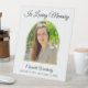 Ce magnifique panneau de piédestal fonctionne bien sur une table lors de votre célébration de la vie ou des funérailles. Vous pouvez ajouter votre propre photo avec le nom et les dates. Le design de l'arc fait un beau cadre pour la photo de votre être cher. Copyright Sympathy Merci par Kathy Henis