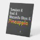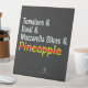 Respectez les pizzerias qui vendent de l'ananas sur des pizzas, mais à d'autres (et restaurants italiens qui gardent la cuisine italienne authentique) qui ne le font pas, n'ayez pas peur d'afficher FIÈREMENT ce guéridon avec les ingrédients de la pizza Margherita et le dernier croisé en texte jaune vif !