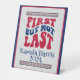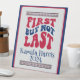 Montrez votre soutien pour la première candidate démocrate noire et asiatique avec ce panneau de piédestal élégant pour votre maison ou votre entreprise ! "First but not dernier, Kamala Harris 2024" texte en style rétro rouge et bleu patriotique.