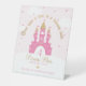 Affiche de bienvenue d'anniversaire de princesse personnalisée. Un château princesse rose et or avec "Il était une fois, dans un pays lointain..." et puis le nom de la princesse et son âge imprimé ci-dessous. Note : Les éléments Gold seront imprimés pour ressembler à de l'or parties scintillant, mais aucune parties scintillant réelle ne sera utilisée dans le produit final.