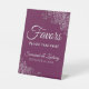 Ce joli panneau de table est conçu pour invitation vos invités à prendre une faveur de mariage. Il présente une conception simple mais élégante magenta ou cassis violet et argent avec des lettres de script fantaisie et délicats boucles et tourbillons de fausse feuille dans les coins. Le panneau dit : Faveurs, prenez-en une ! Il y a de la place pour vos noms et la date du mariage ci-dessous.