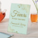 Ce joli panneau de table est conçu pour invitation vos invités à prendre une faveur de mariage. Il présente un design sobre mais élégant vert menthe et or avec des lettres de script fantaisie et des boucles et tourbillons délicats en or dans les coins. Le panneau dit : Faveurs, prenez-en une ! Il y a de la place pour vos noms et la date du mariage ci-dessous.