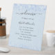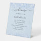 Un arrière - plan bleu bébé décoré de confettis, brille. Personnalisez et ajoutez vos noms et les détails du mariage. Lettres de couleur noire. Si vous avez plus de texte, il est possible de réduire l'espace de ligne.