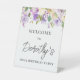 Bienvenue à votre fête d'anniversaire avec cet élégant rose violet et signe de bienvenue verdoyant. Il est en coordination avec la collection Rustique Purple Floral Botanical.