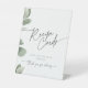 Panneau de carte à recette avec feuilles eucalyptus pour une Fête des mariées verte. Conçu avec une touche contemporaine, ce décor personnalisable ajoute une touche d'élégance à votre célébration. Des invitations assorties, des cartes d'enceinte et d'autres panneaux sont également disponibles dans cette collection.